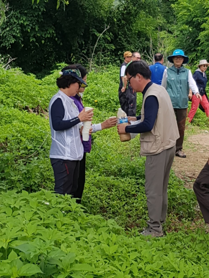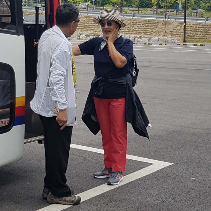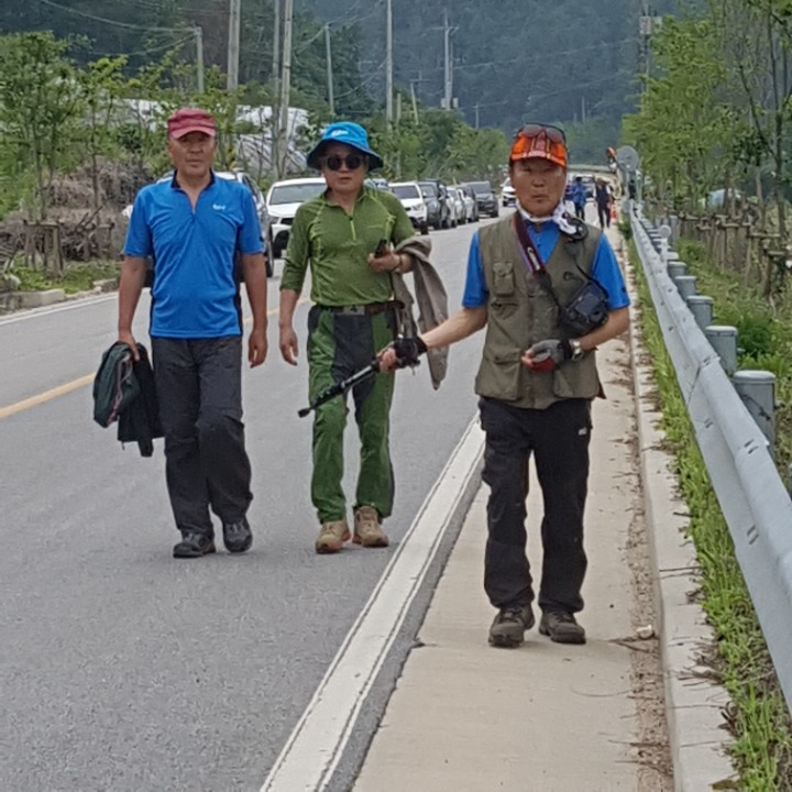 오늘의 목적지 포천의 하늘다리로 출발하면서 김건일 회장께서 미리 준비한 아침 김밥을 제공하면서 오늘 행사에