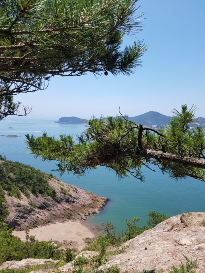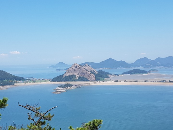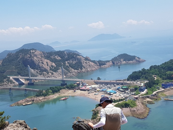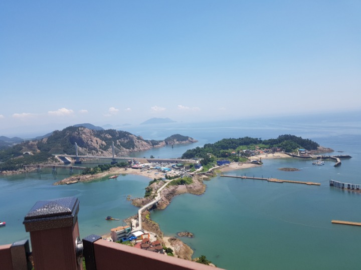 산 정상에 이르자 주변섬들이 한 눈에 보이며 신천지를 연상시키는바다의 청색 빛들이 천국에