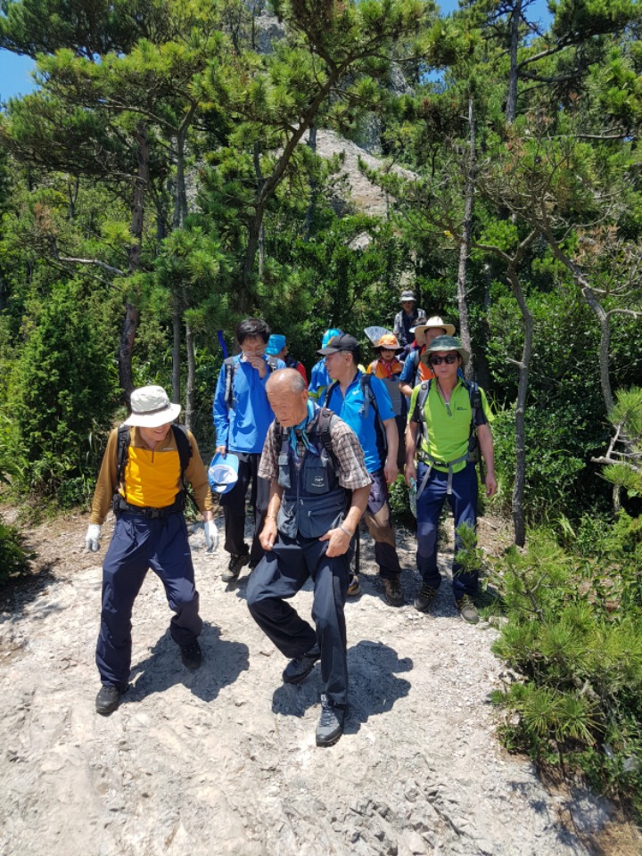 불과142미터의 얕은 산이지만 오르는 길이 험하게 경사지고 가파르기 이를데 없다.