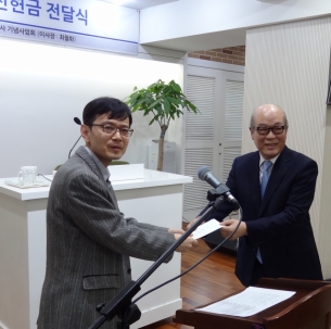 이며 김영관(외교72)수석 부회장이 축하를 해주었다.