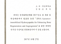 융합공학부 손재우 학생, 한국화학공학회에서 연구상 수상 7 지난 10월 25일부터 27일까지 열린 한국화학공학회 가을 총회 및 학술대회에서 융합공학부 바이오메디컬 전공 석사과정 손재우 학생 (지도교수 융합공학부 최종훈 교수)이 논문 ‘DNA Aptamer-...