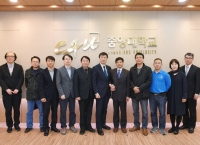 <사진 설명 : 왼쪽부터 목기현 국제교류팀장, 장성갑 교수, 채영호 교수, 문재철 교수, 이충직 첨단영상대학원장, 류중석 교학부총장, 왕사경 청도과기대 서기, 김정현 청도과기대 교수, 이페이 청도과기대 주임, 난지 청도과기대 과장, 조동규 첨단영상대학...