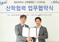 중앙대학교 산학협력단은 지난 5월 3일(목) 서울캠퍼스 102관(약학대학 및 R&D센터) 산학협력단장실에서 n.thing과 산학협력 업무협약을 체결하였다. 협약식에는 김원용 중앙대 산학협력단장, n.thing 김혜연 대표를 비롯한 주요 관계자들이 참석하여 지...