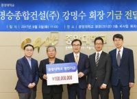 이공대학 토목공학과를 졸업한 강명수 동문이 지난 9월 5일(화) 오전 11시 201관(본관) 3층 총장실에서 1억의 발전기금을 기탁하였다. 이날 행사에는 김창수 총장, 장재옥 대외협력처장, 이홍식 사회기반시스템학부 교수, 나창훈 대외협력팀장을 비롯해 강명...